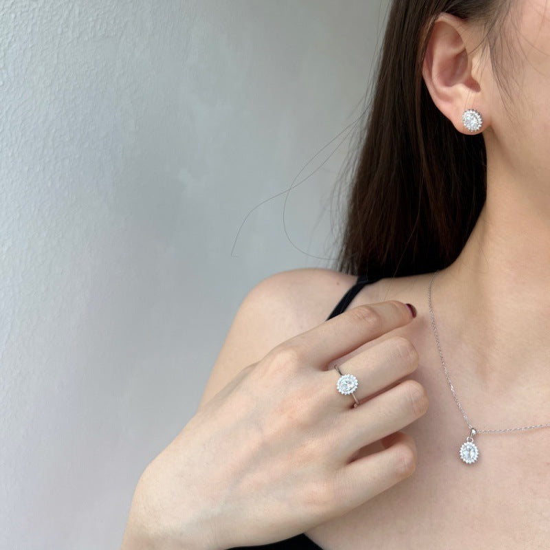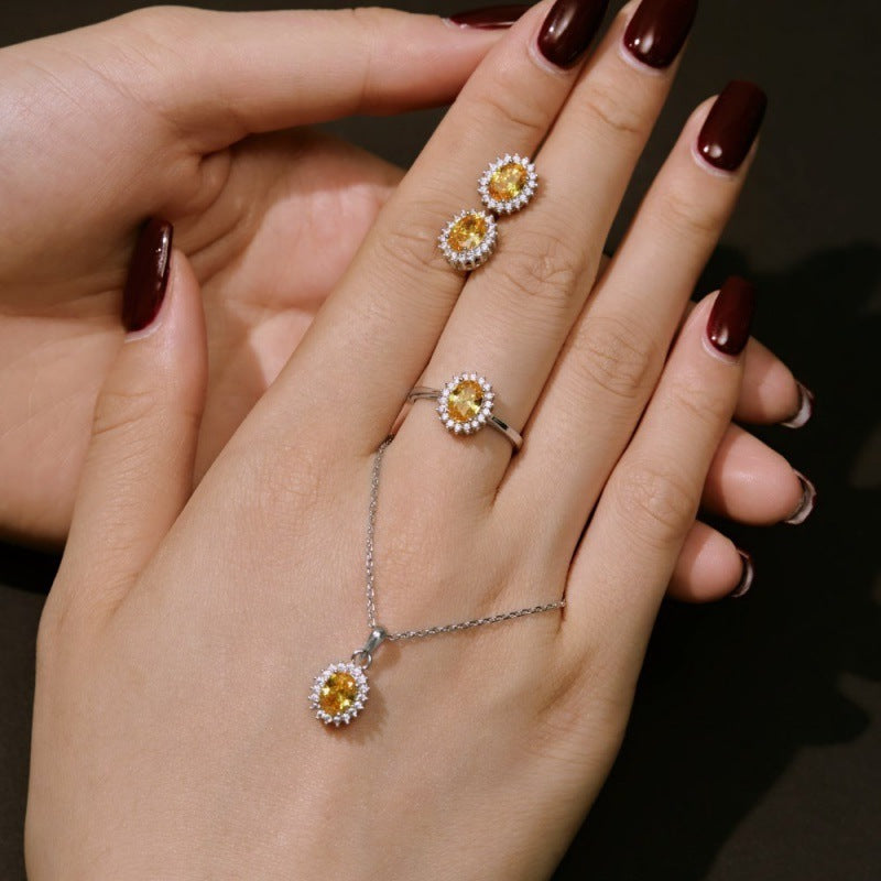 S925 Sterling Silver 5A Zircon Colored Gems Full Diamond Oval
